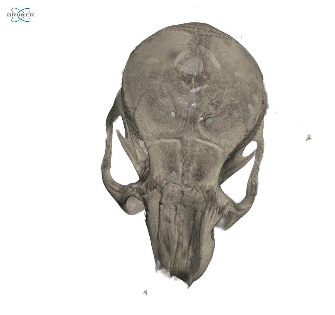 Micro-CT was performed to the skull of a mouse (Mus musculus). This specimen was preserved in 100% ethanol. For this specimen, no contrast agent was used. Scan was performed with a Skyscan 1172 at a voltage of 75kV and 131μΑ with an an aluminium filter of 0.5mm for a half rotation of 180o . This specimen was scanned at a pixel size of 13.79μm  with an exposure time of 1435ms. This scan was performed to a ErfloxP/- craniosynostosis animal (http://bioimaginglab.hcmr.gr/#) . Specimen was provided by George Mavrothalassitis (FORTH) and scanned by Niki Keklikoglou.