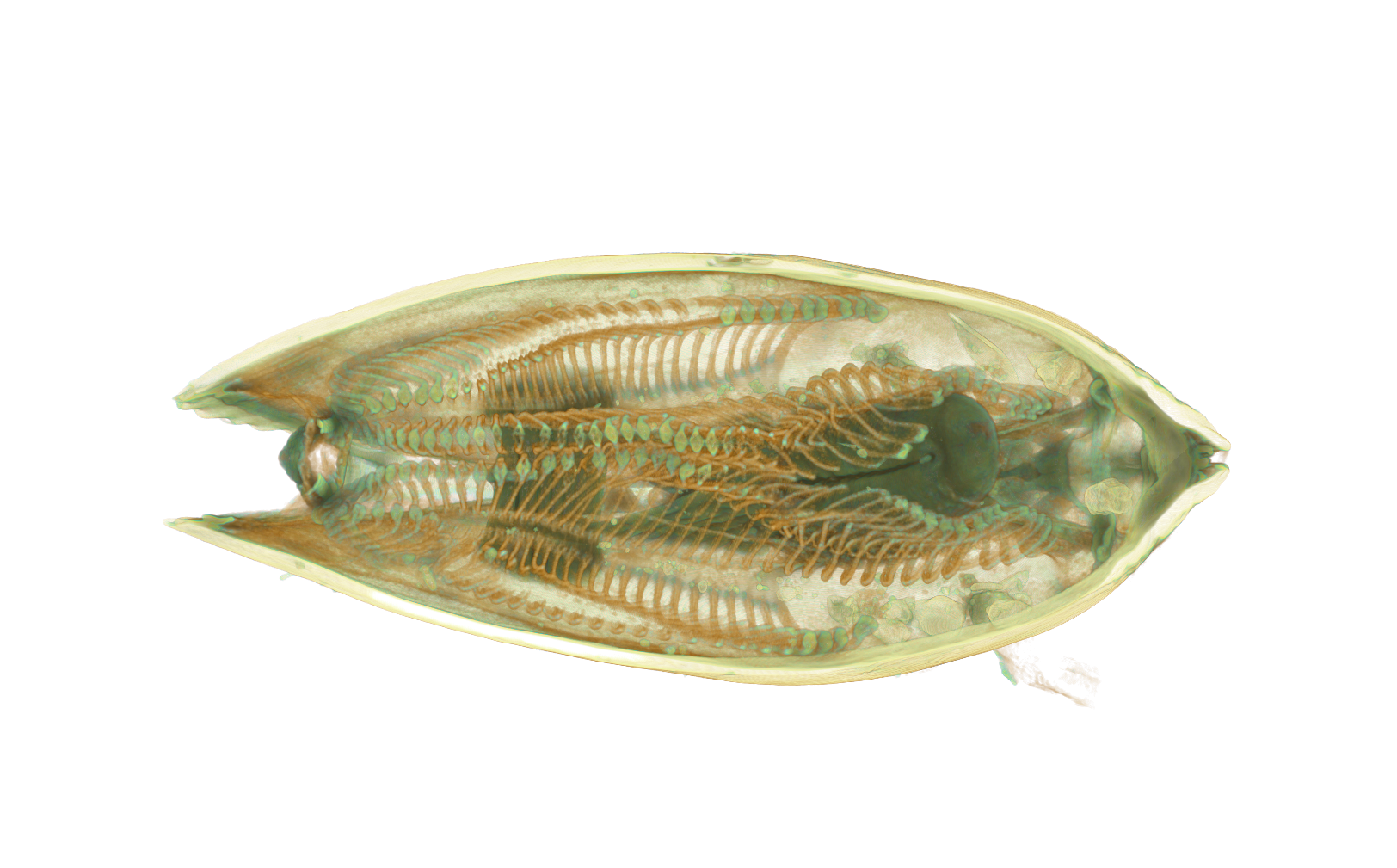 scan-00184Micro-CT was performed to a small bivalve Musculus costulatus. This specimen was fixed and preserved in 96% ethanol. Specimen was stained in 0.3% PTA solution in 70% ethanol for 5 days. Scan was performed with a Skyscan 1172 at a voltage of 59kV and 167μΑ without filter for a full rotation of 360o . This specimen was scanned at the highest camera resolution with an exposure time of 1555ms. This scan was performed for testing contrast enhancing techniques for the application of micro-CT in marine biodiversity studies (http://www.microscopy-analysis.com/sites/default/files/2013_March_Faulw…). Specimen was provided and scanned by Sarah Faulwetter.