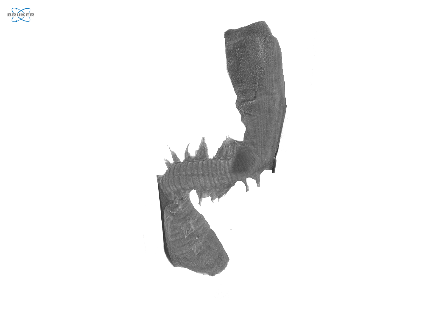 scan-01911Micro-CT was performed to a Glycera tridactyla specimen. This sample was fixed in formalin and preserved in ethanol. For this specimen, no contrast agent was used. Scan was performed with a Skyscan 1172 at a voltage of 60kV and 167μΑ without filter for a rotation of 360o. This specimen was scanned at the highest camera resolution with an exposure time of 318ms. This scan was performed for the visualisation of jaws position of this specimen within the framework of MAPWORMS project funded from the European Union’s Horizon Europe research and innovation programme under grant agreement N° 101046846 . Specimen was provided by Luigi Musco (CONISMA) and scanned by Emmanouela Vernadou and Niki Keklikoglou.
